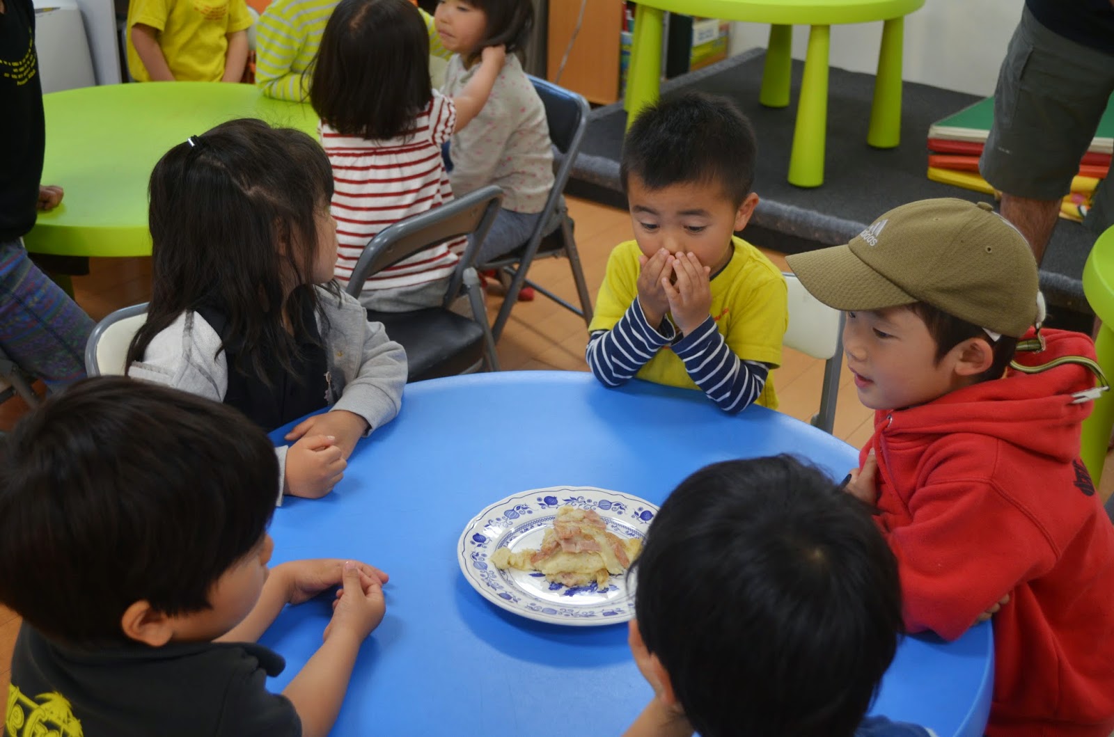今日学童でひらやーちーを作りました。ひらやーちーとは沖縄料理で平ペったいお好み焼き見たいな一品です(韓国料理に例えばチヂミ)。今回も子供たちがスパムを切り、小麦粉の上に水を注ぎ、混ぜ、ほんだしをと切ったスパムを入れ、鉄板?に注ぎ、ひっくり返し、そして最後に食べました。自分的には大変でしたけど、参加した子供たち全員楽しんだと思います。特に食べるのを(笑)